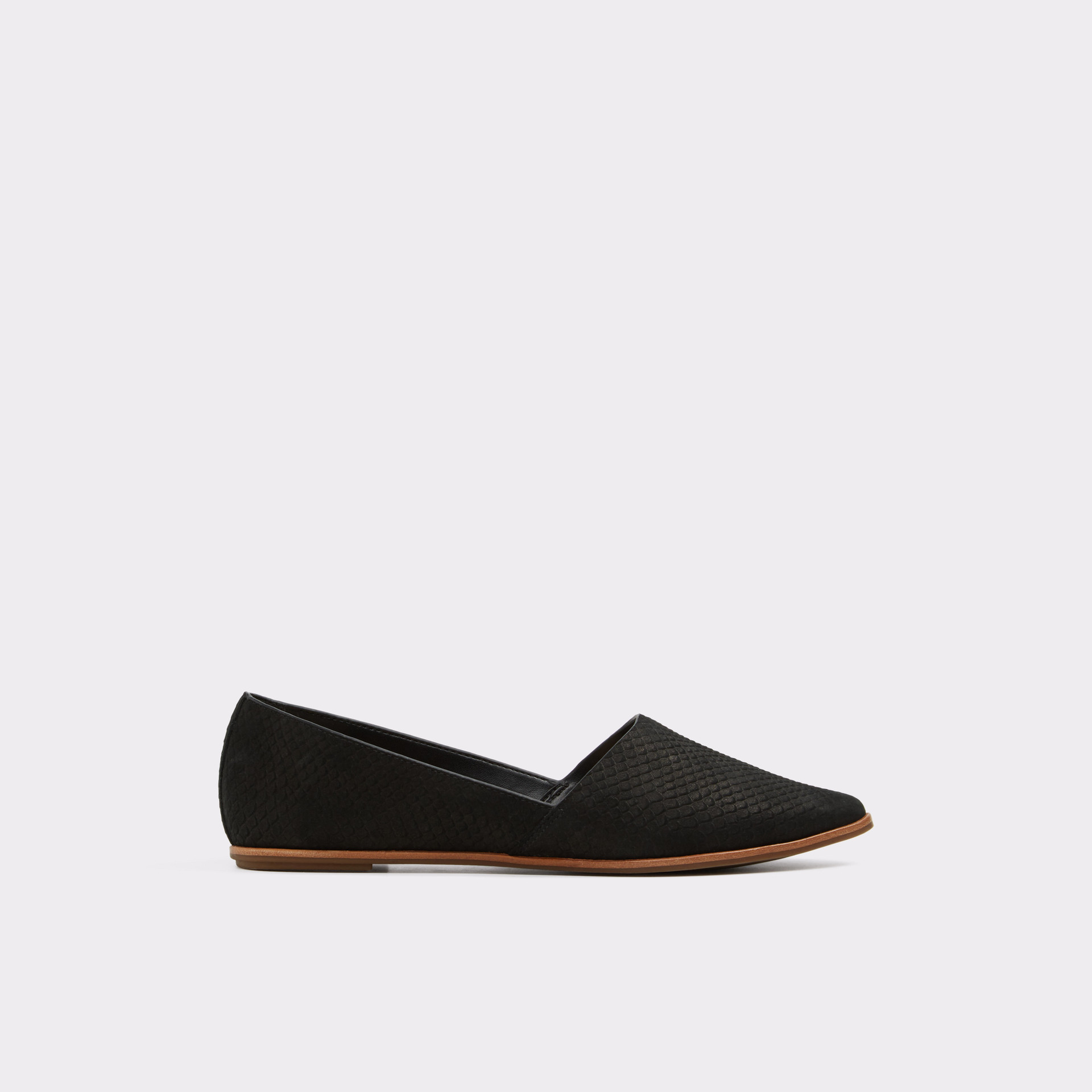 Sapatos rasos BLANCHETTE para mulher, em pele, em preto e com acabamento em ponta amendoada.