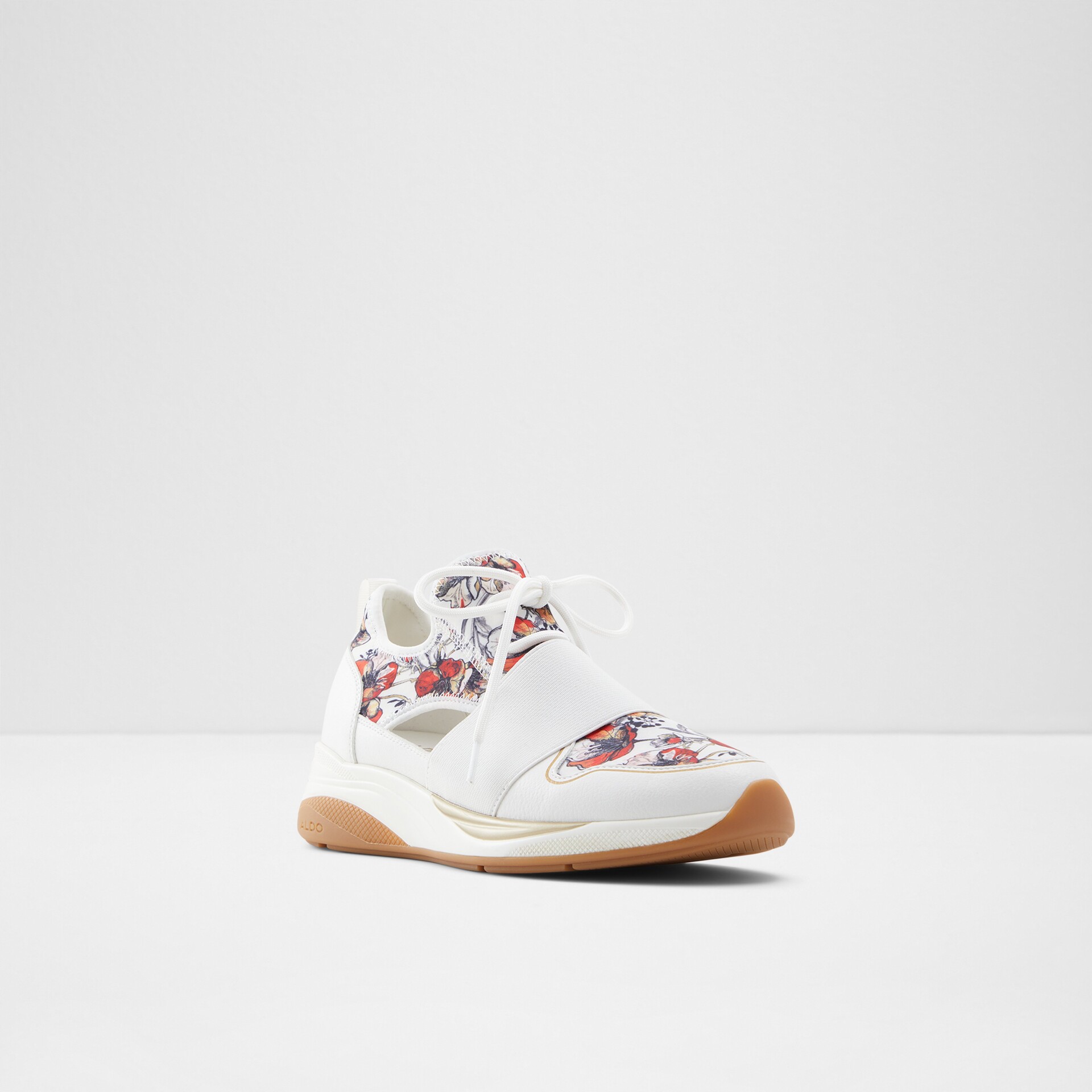 Sapatilhas rasas DWIEVIA para mulher, em branco, com acabamento em ponta redonda e um estampado floral. Complete o seu look aqui.