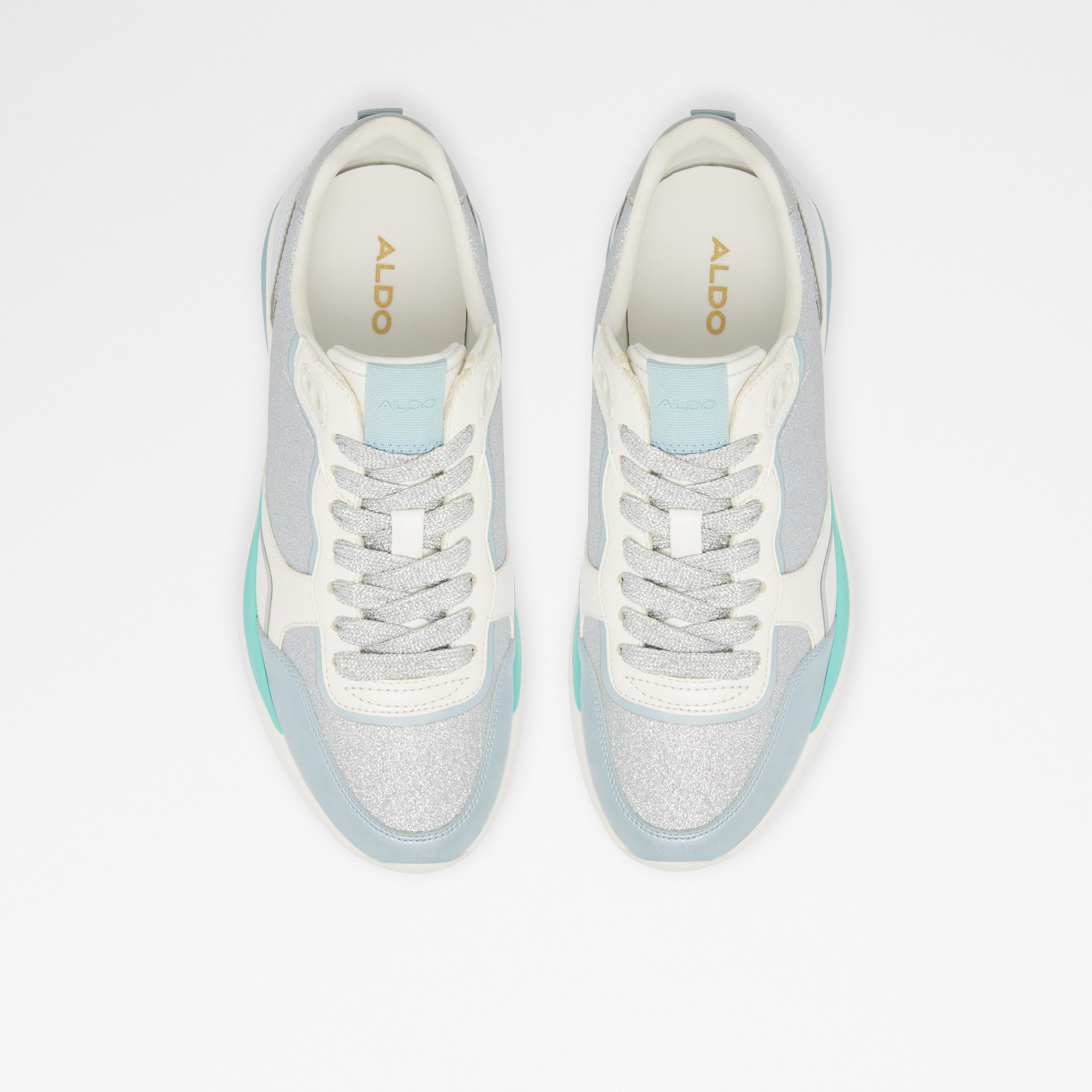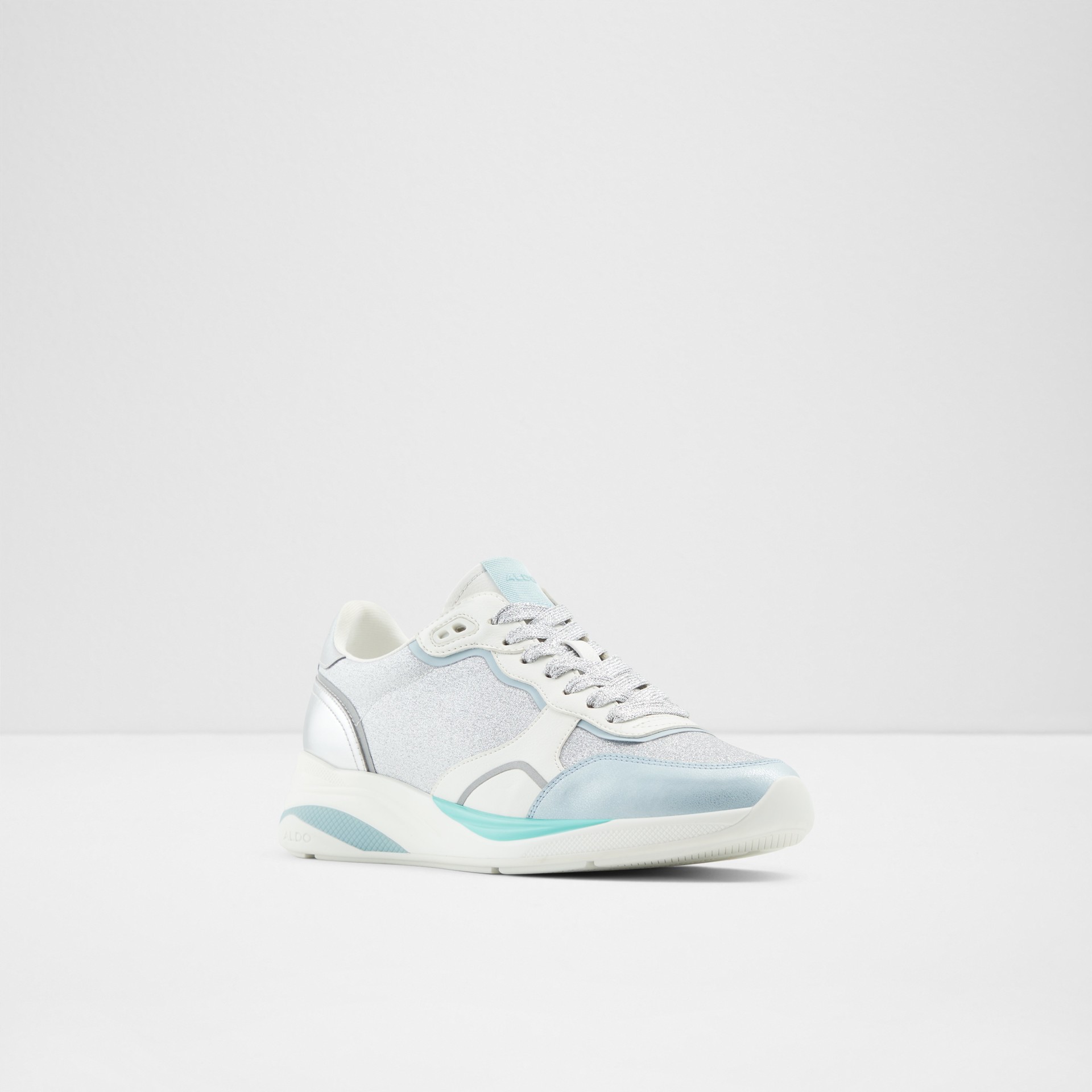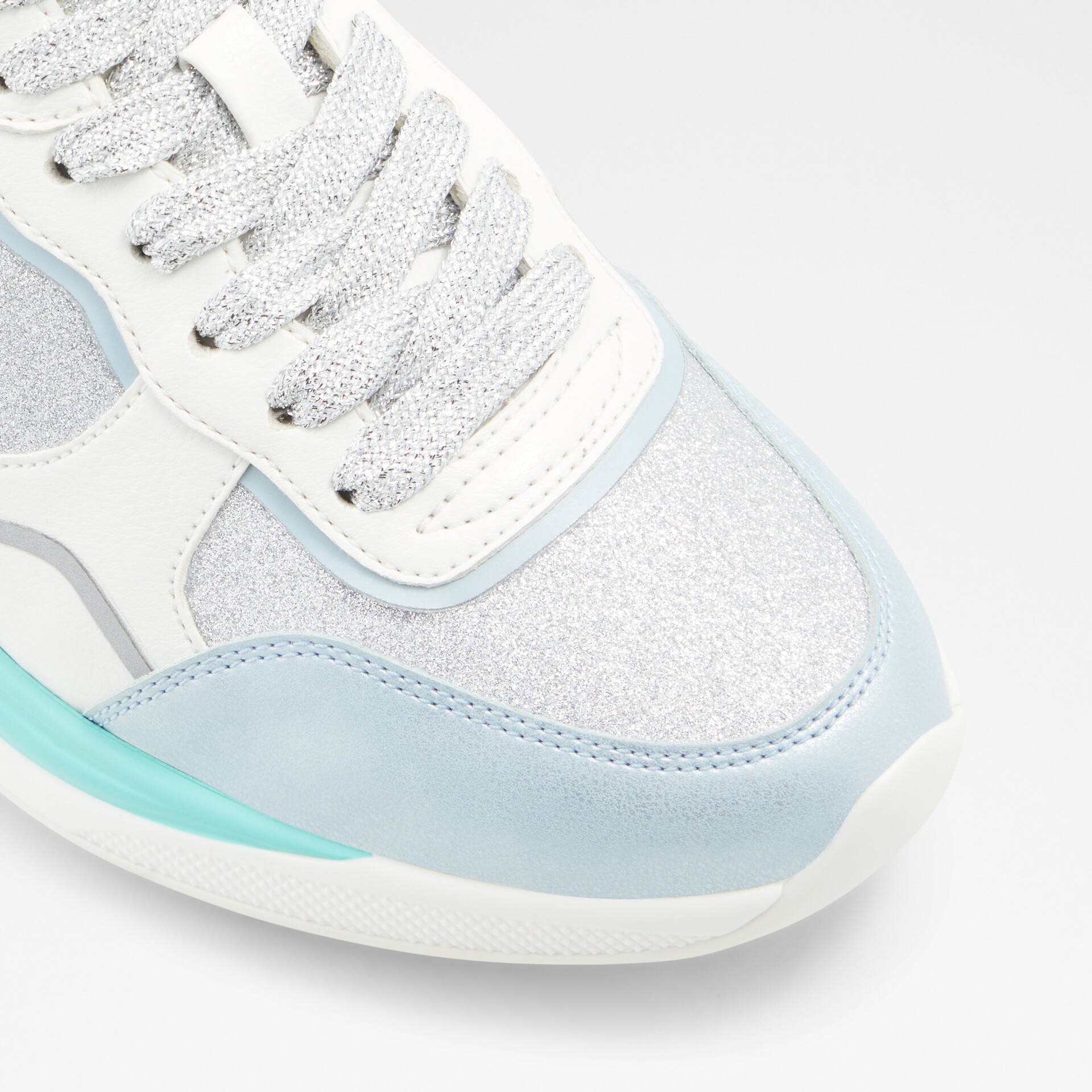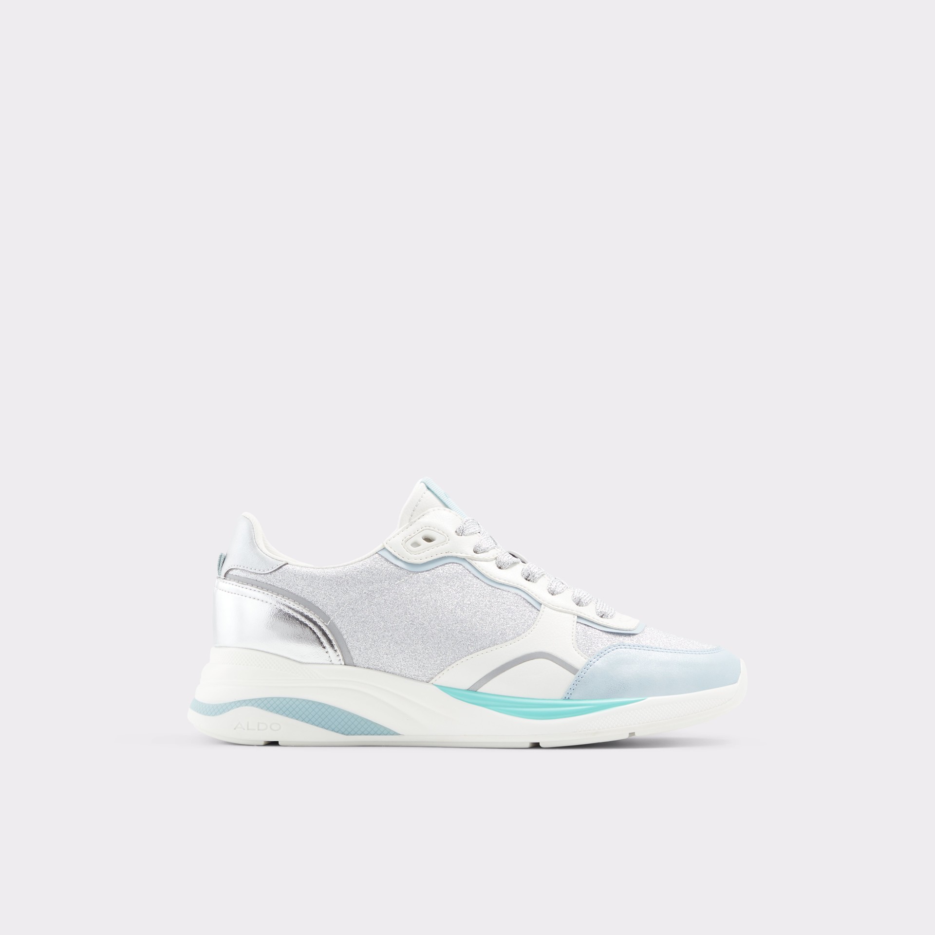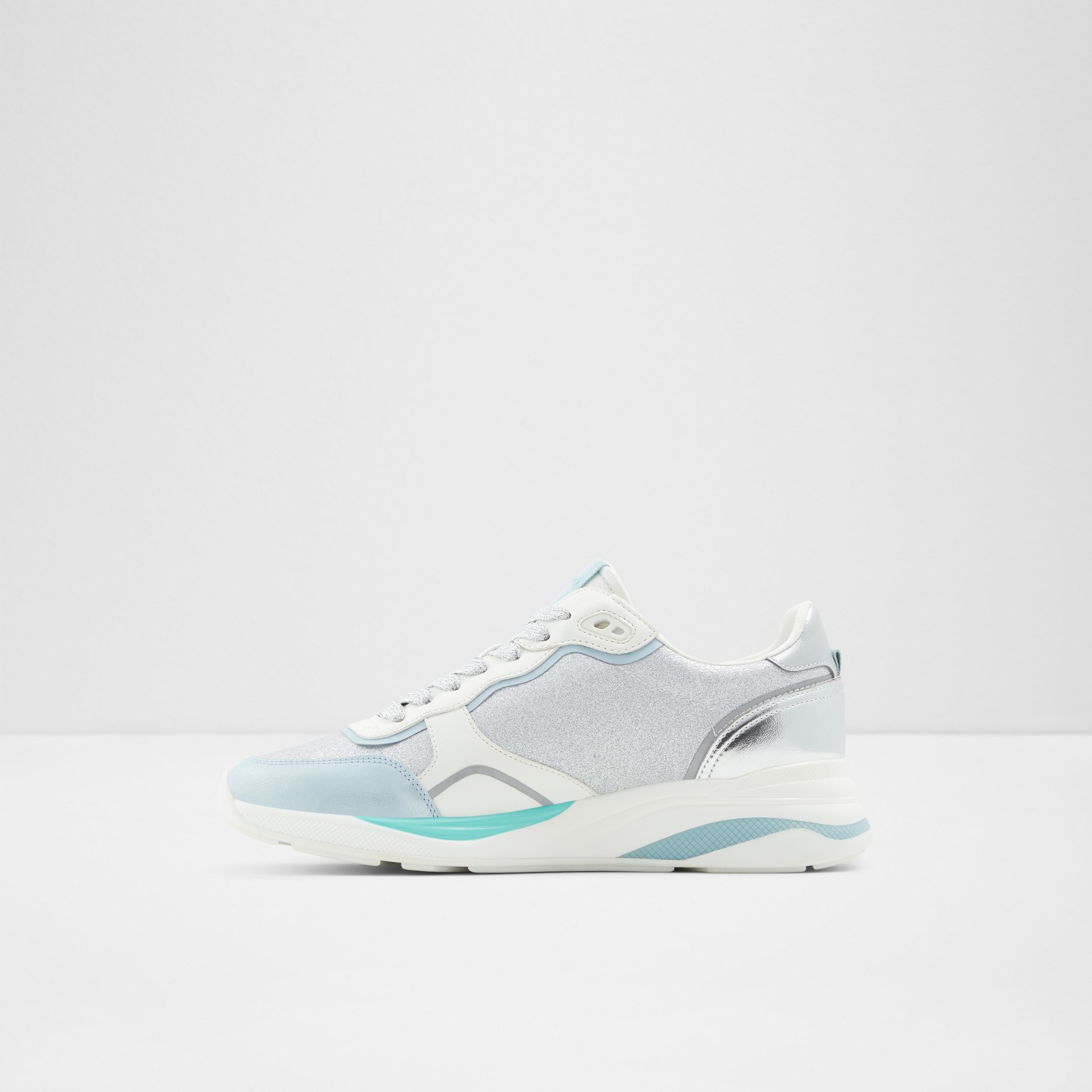 Sapatilhas rasas MAKENNA para mulher, em prateado, com acabamento em ponta redonda e brilhos. Com fecho de cordões.