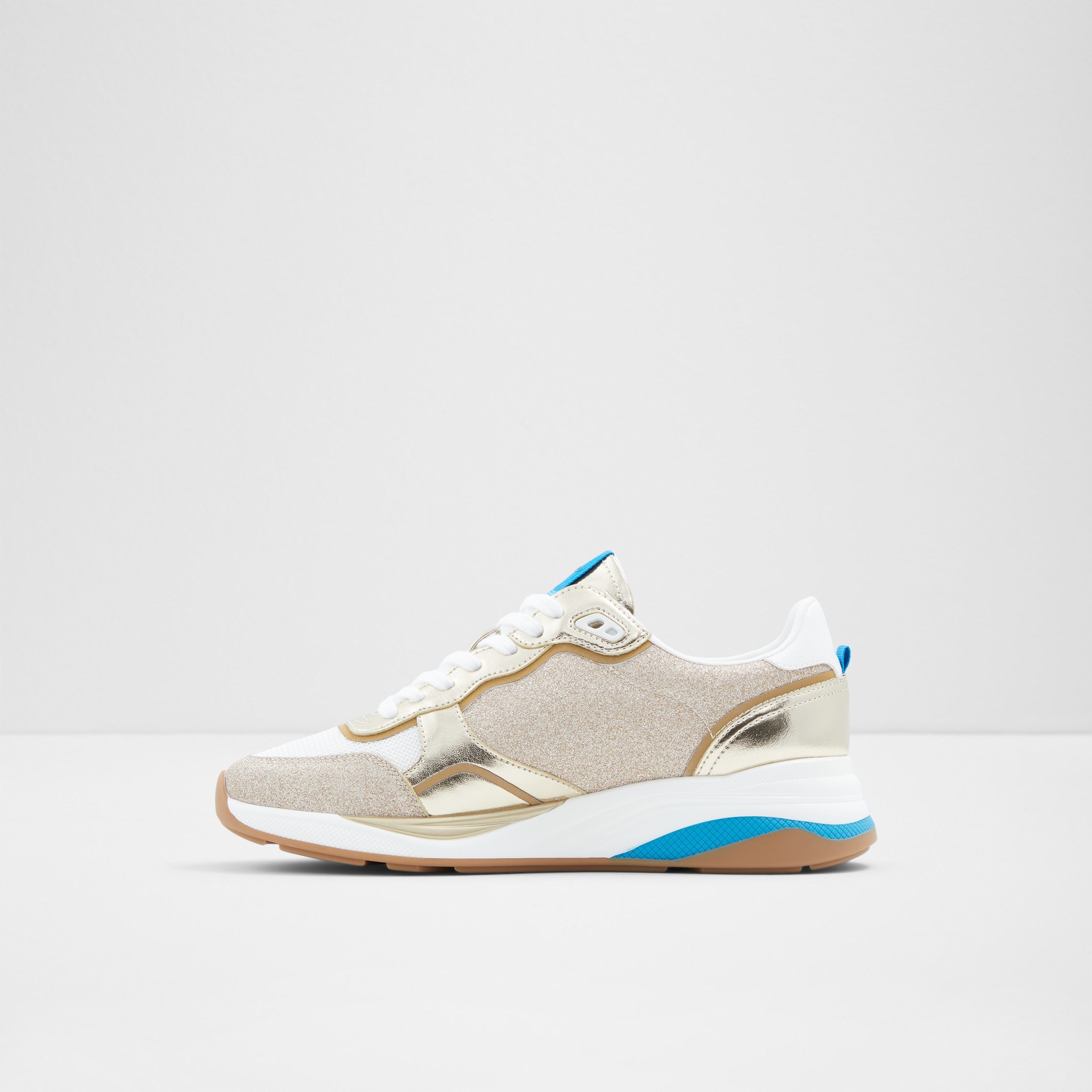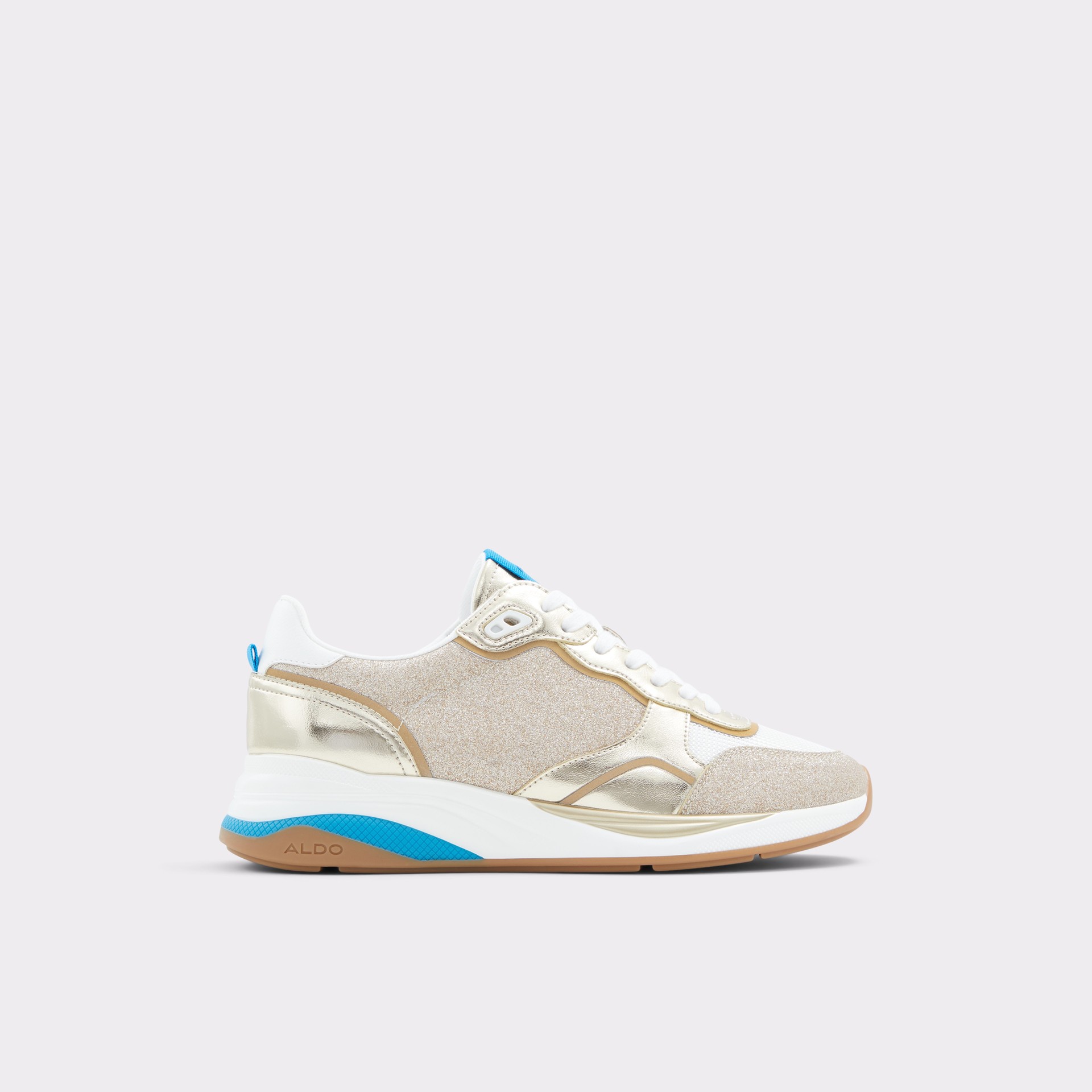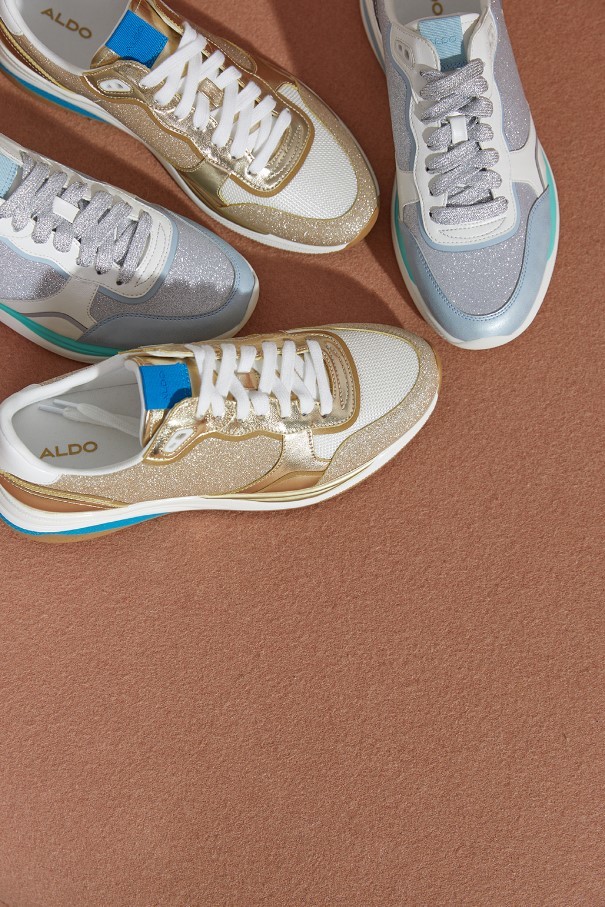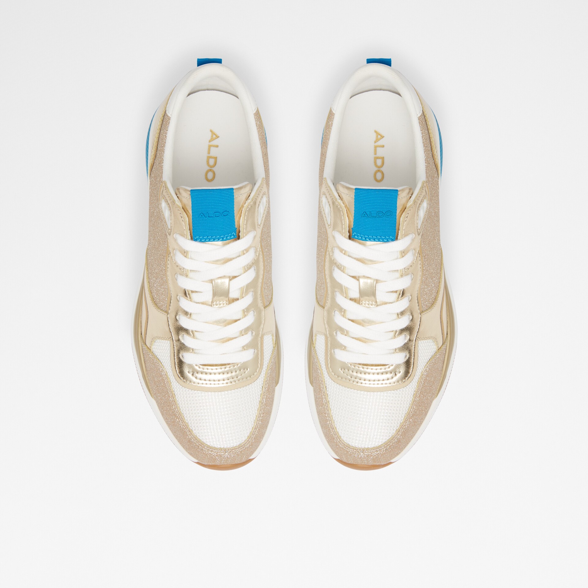 Sapatilhas rasas MAKENNA para mulher, em dourado, com acabamento em ponta redonda e brilhos. Com fecho de cordões.