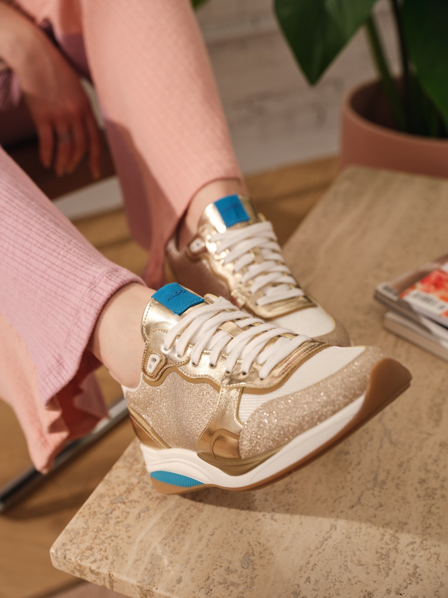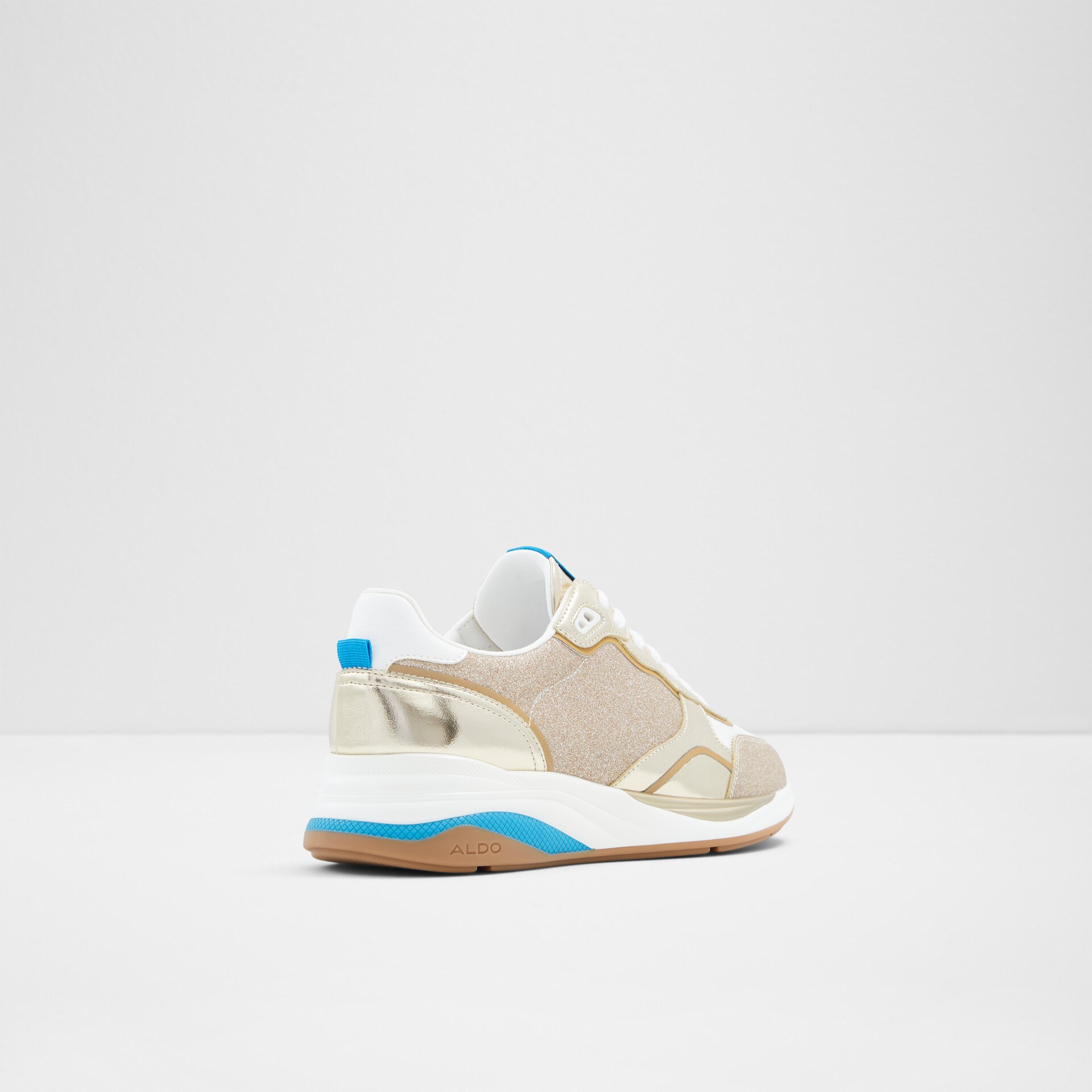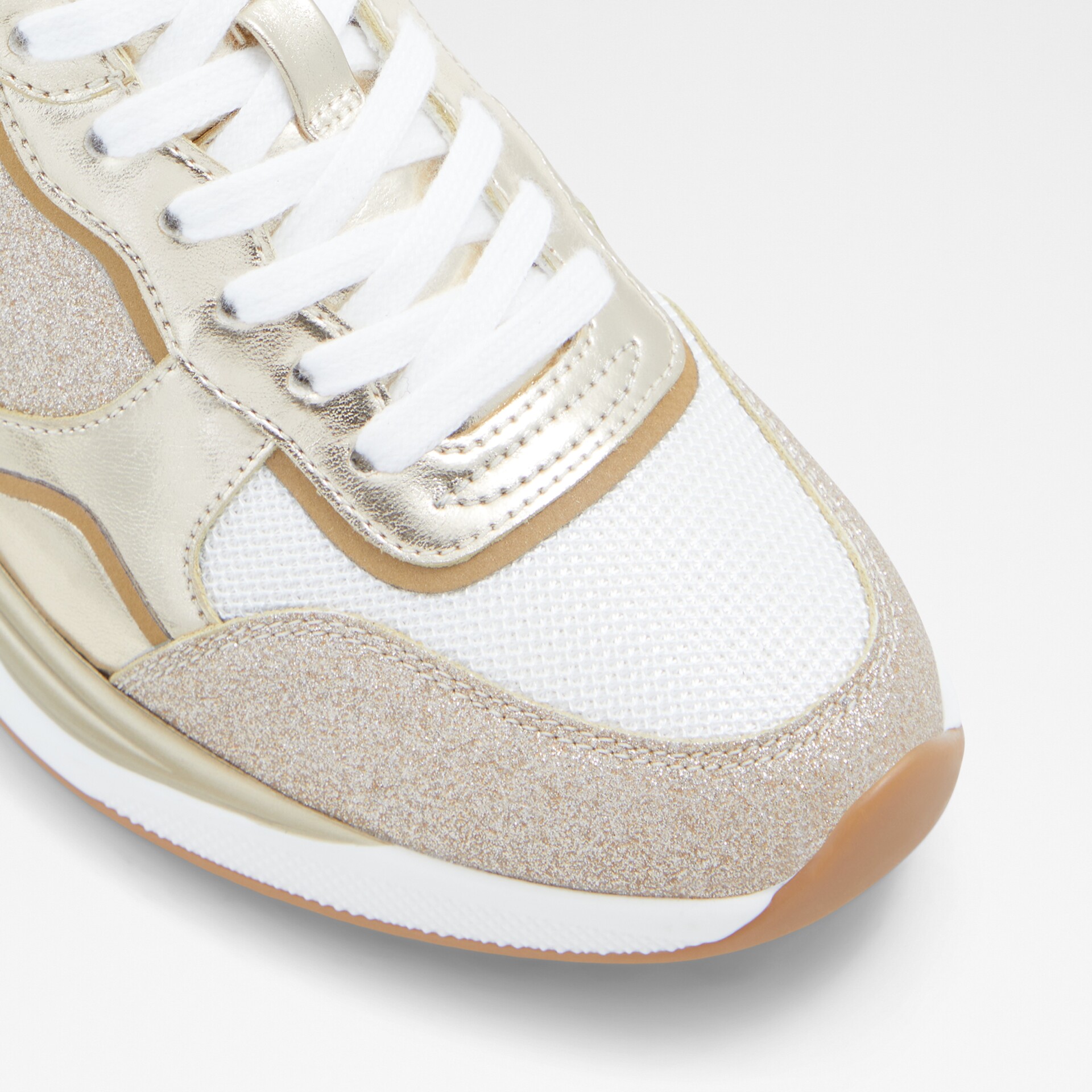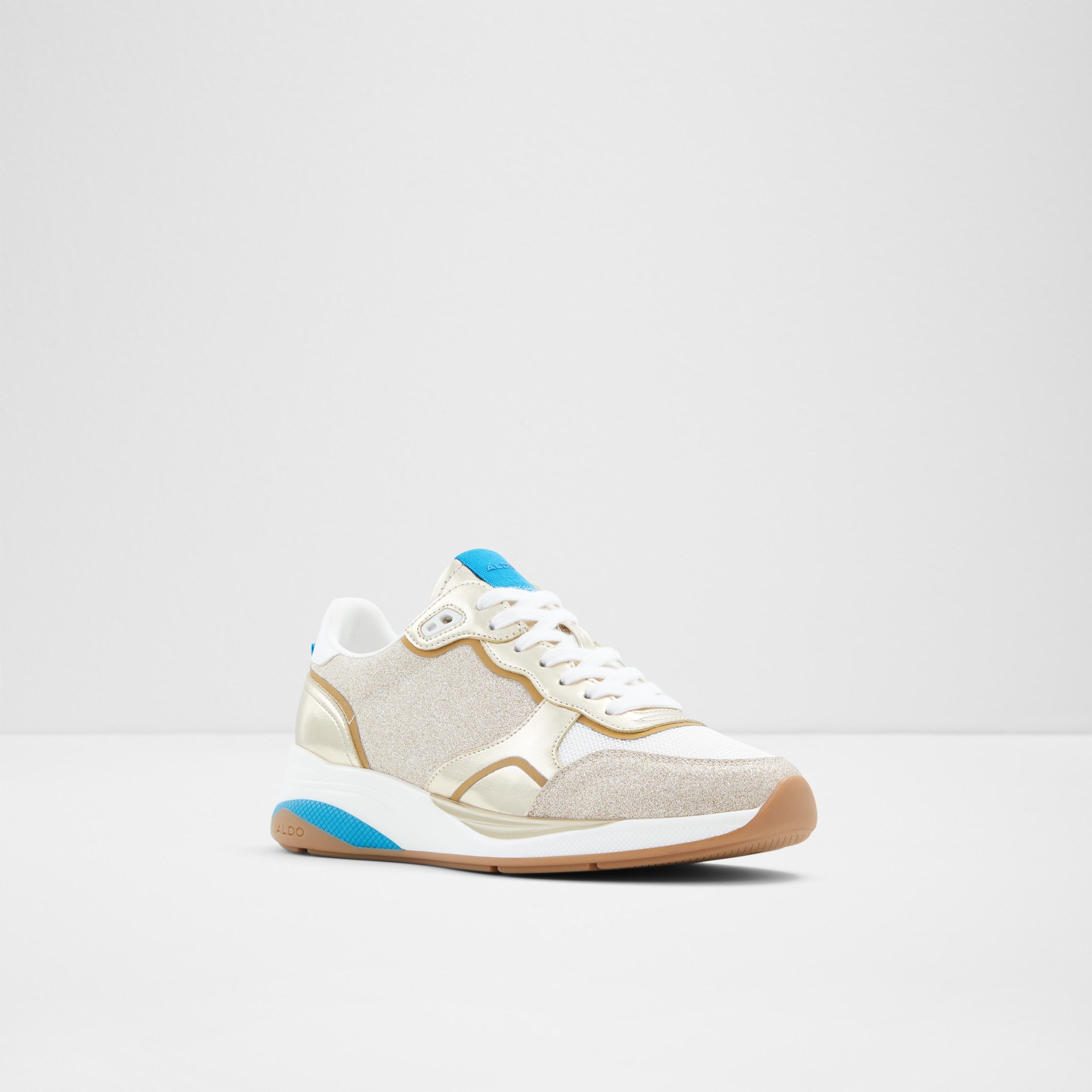 Sapatilhas rasas MAKENNA para mulher, em dourado, com acabamento em ponta redonda e brilhos. Com fecho de cordões.