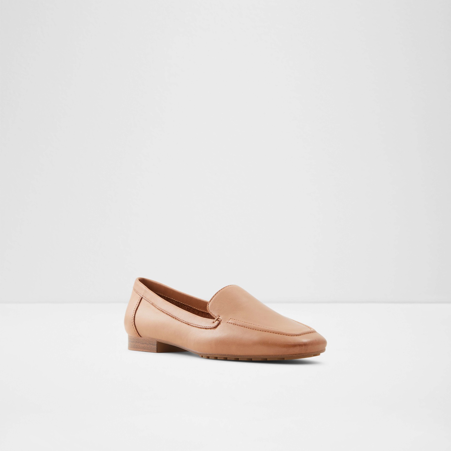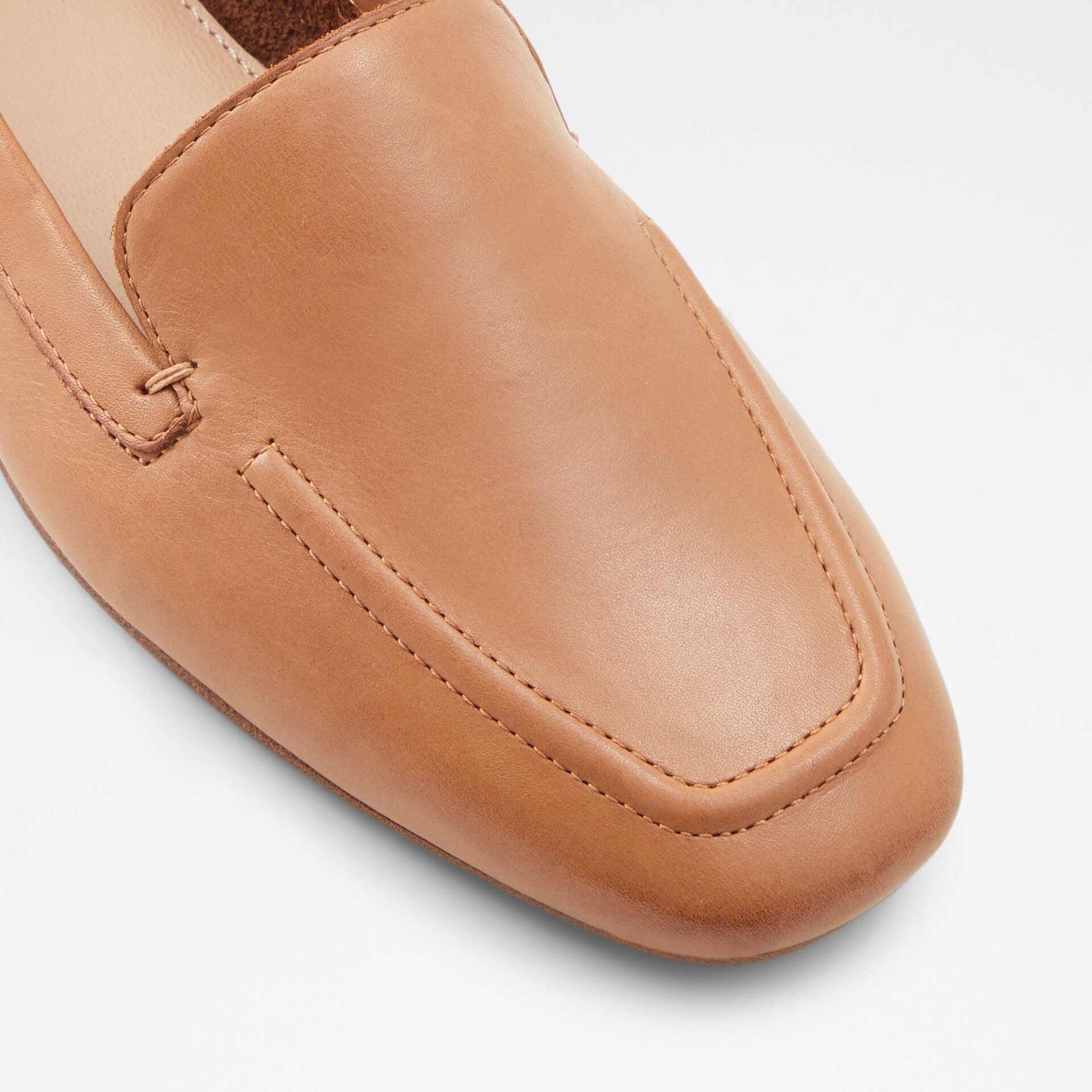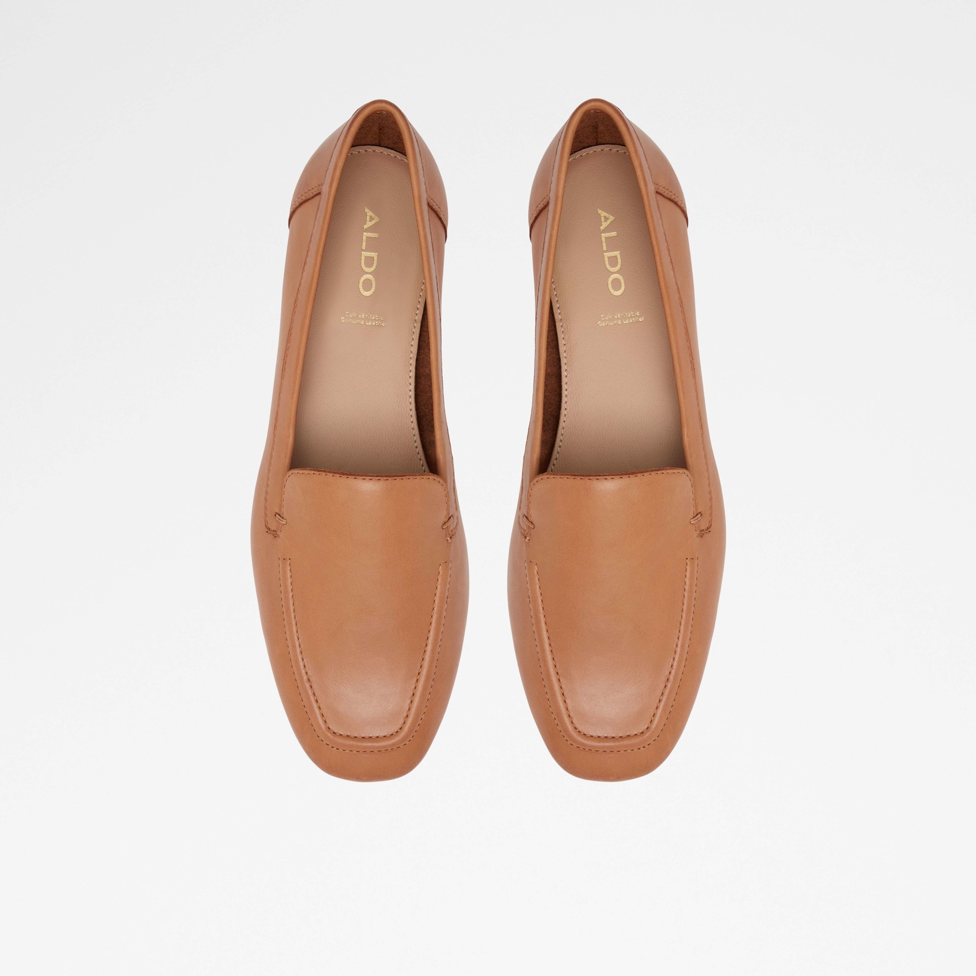 Sapatos rasos PRELINDRA para mulher, em pele, em cognac e com acabamento em ponta amendoada.