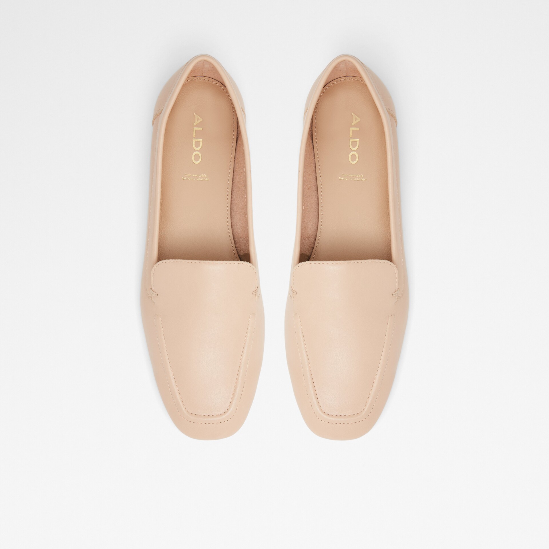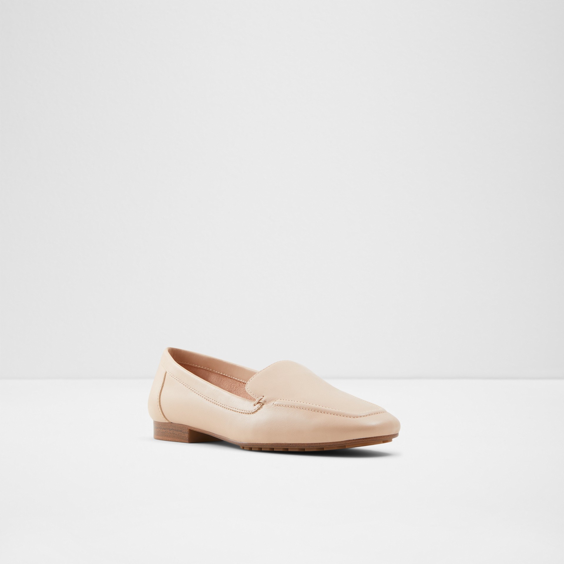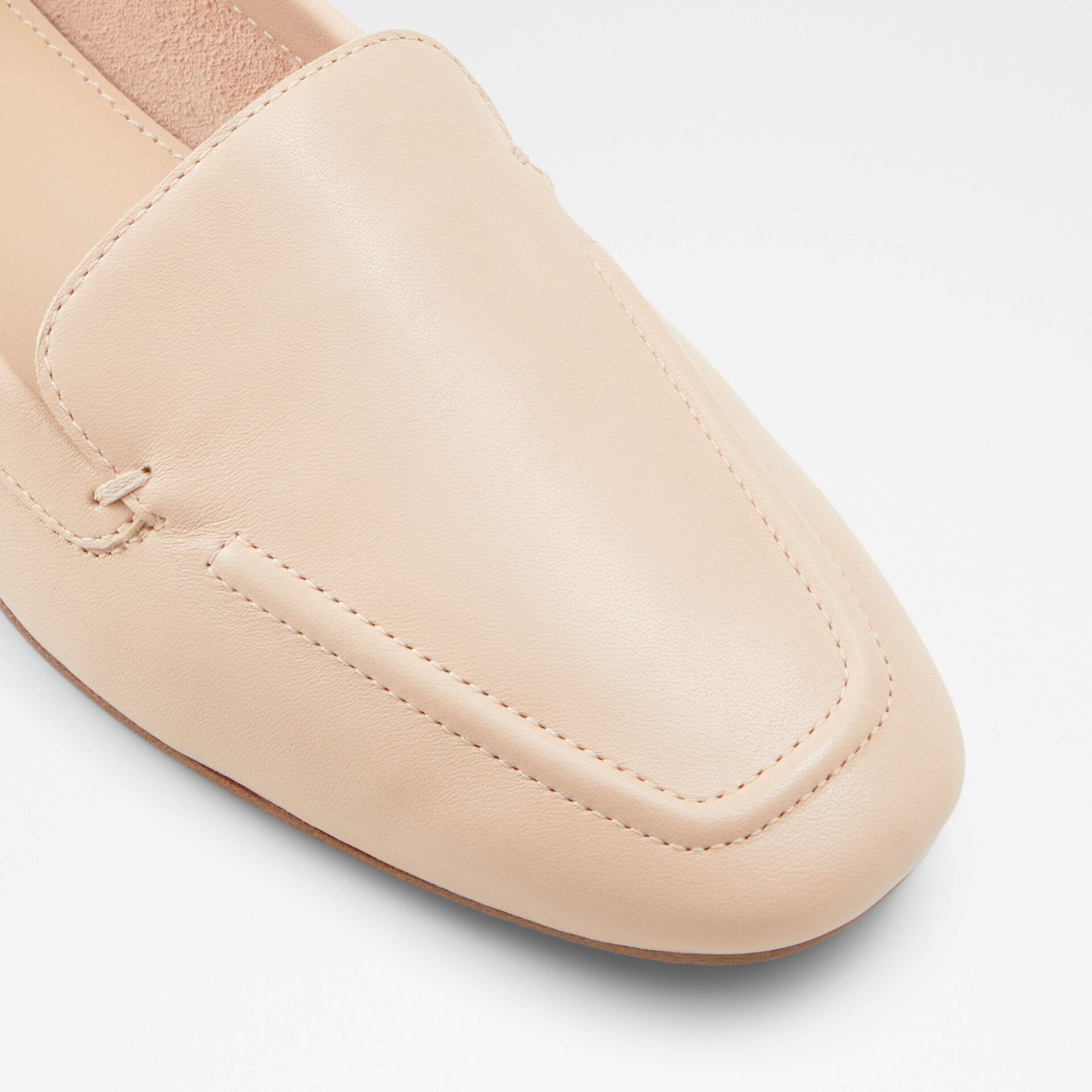 Sapatos rasos PRELINDRA para mulher, em pele, em bege e com acabamento em ponta amendoada.