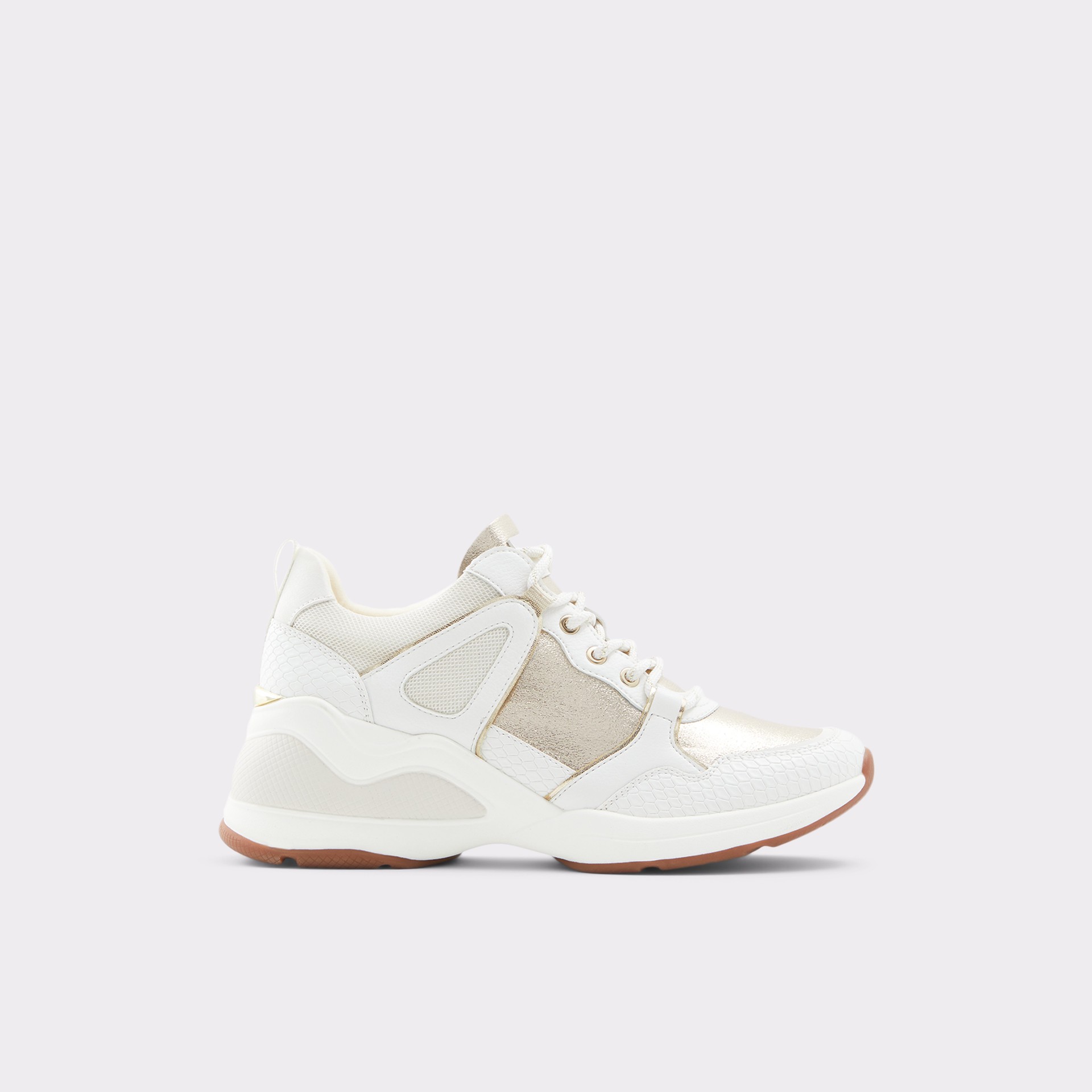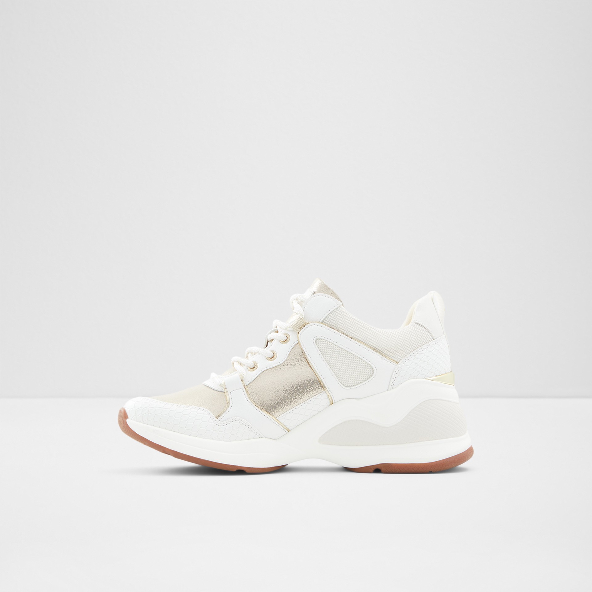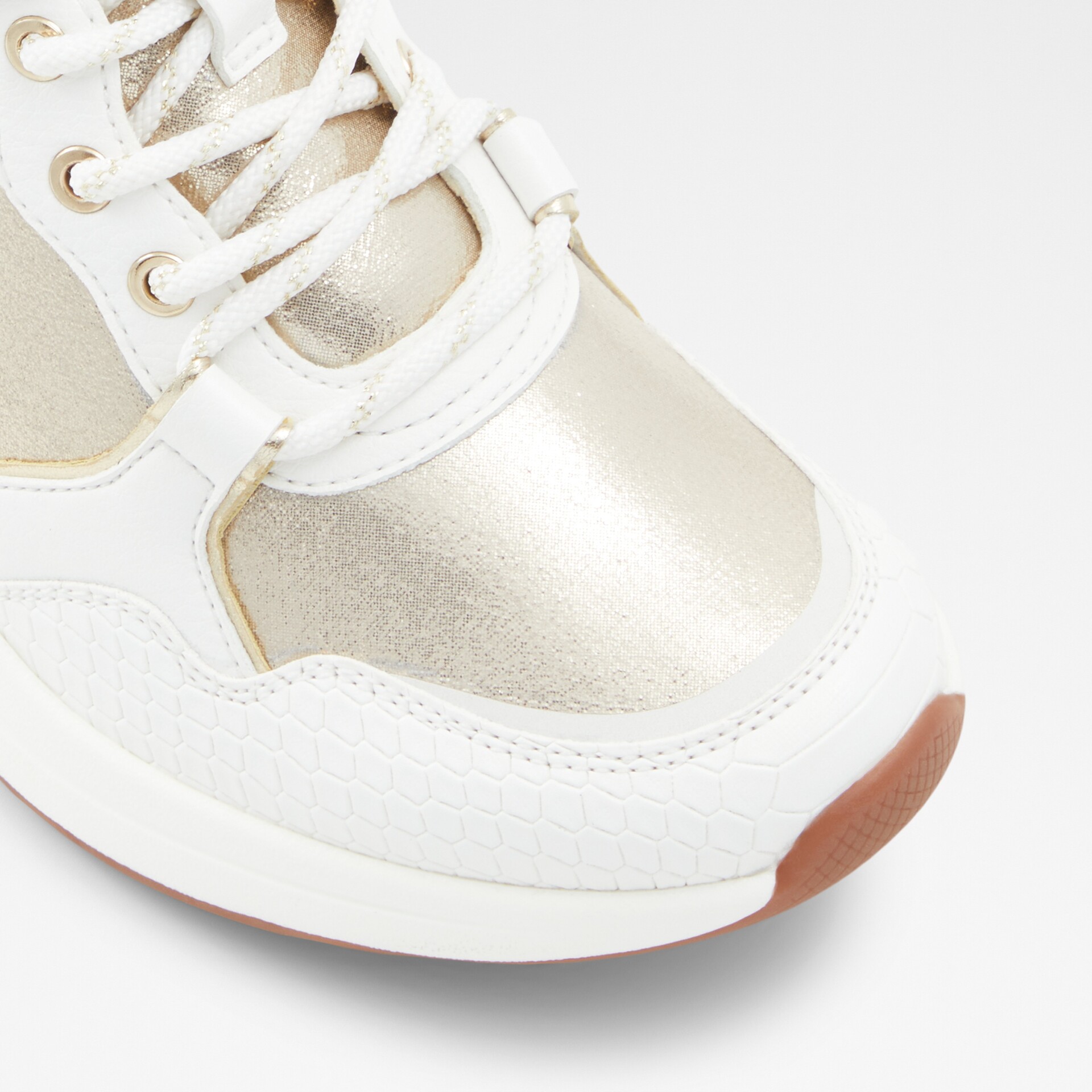 Sapatilhas VANY para mulher, em branco, de salto em cunha, com acabamento em ponta redonda e um detalhe brilhante. Com fecho de cordões.