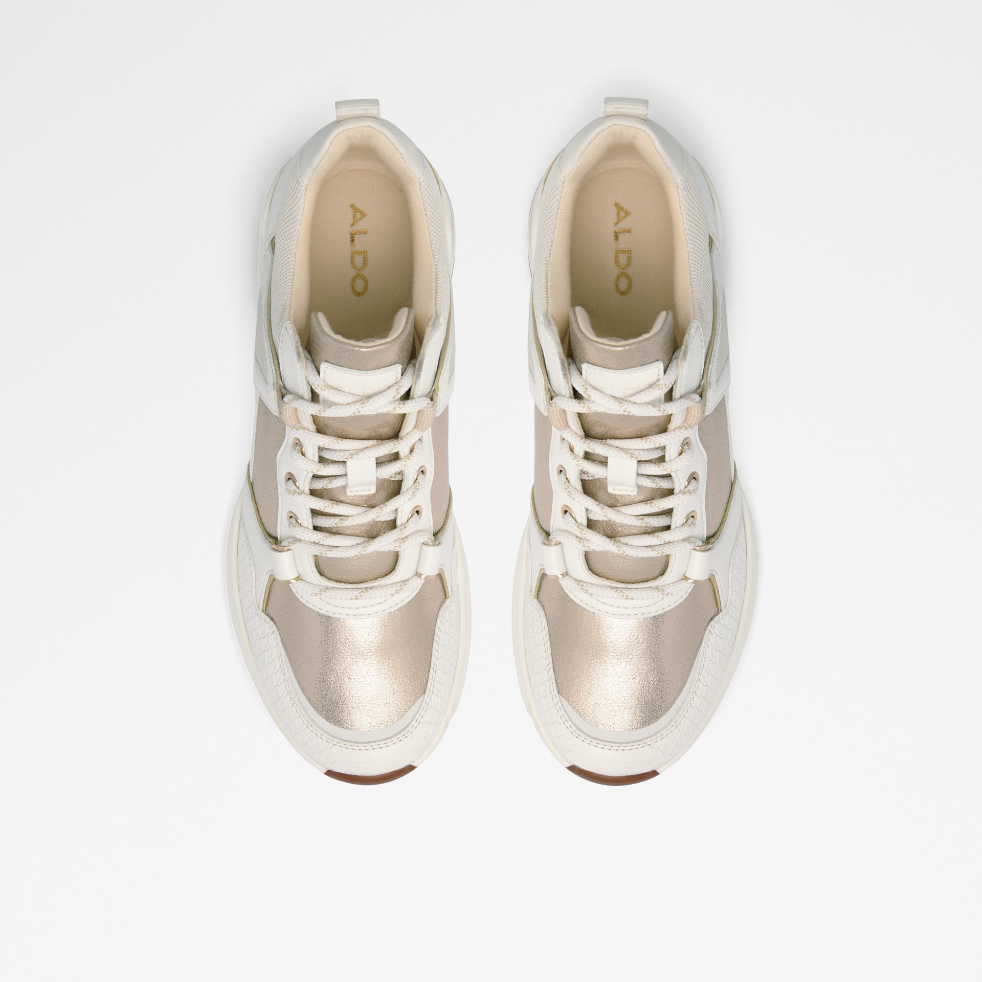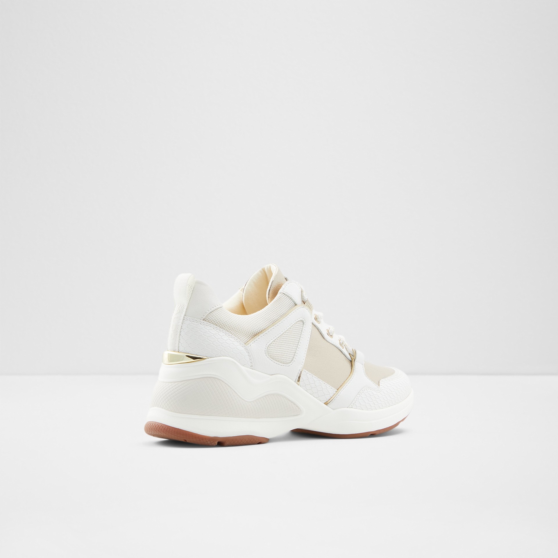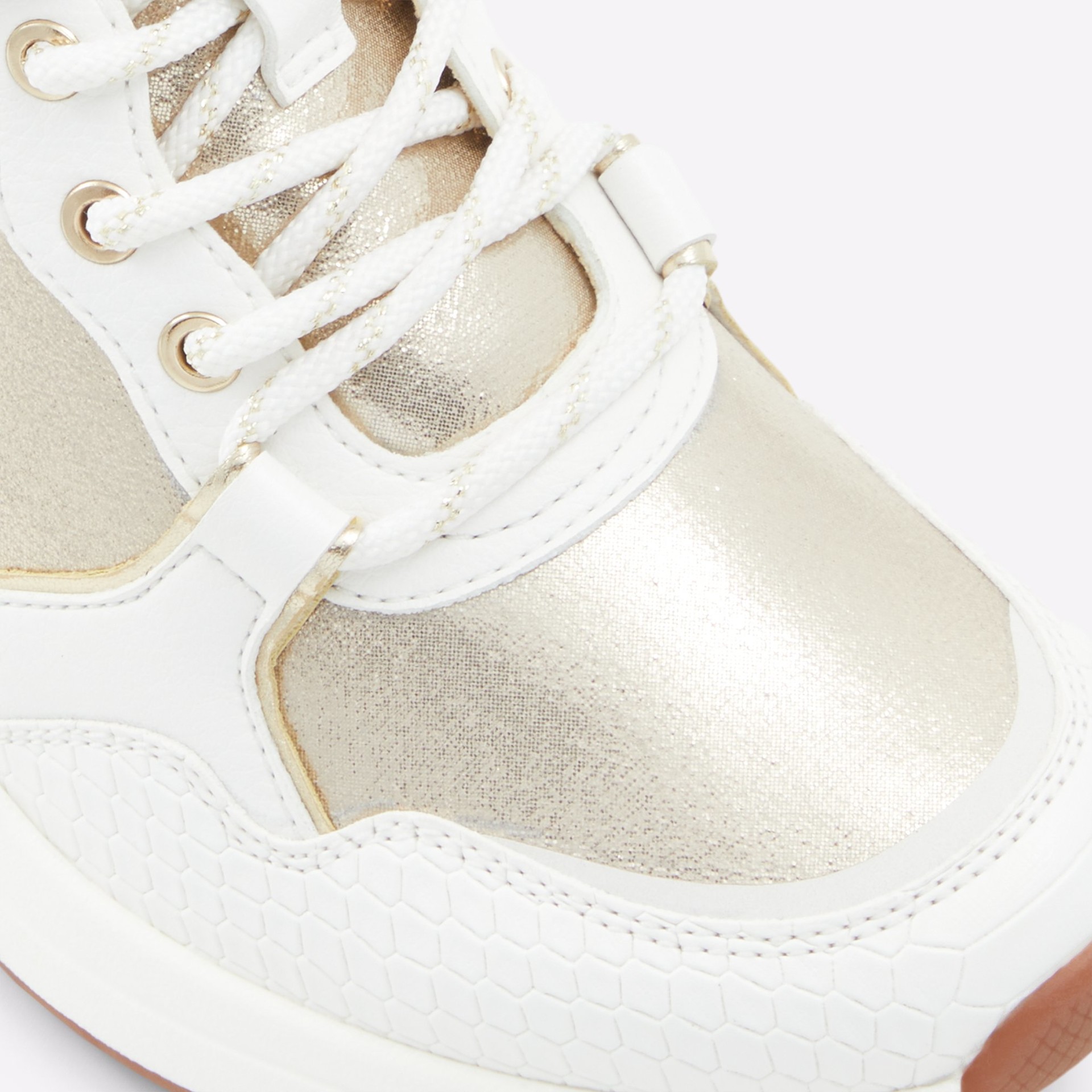 Sapatilhas VANY para mulher, em branco, de salto em cunha, com acabamento em ponta redonda e um detalhe brilhante. Com fecho de cordões.